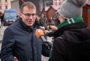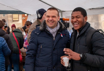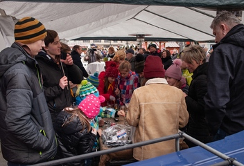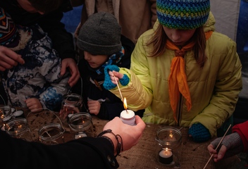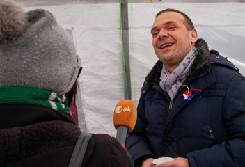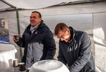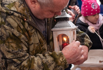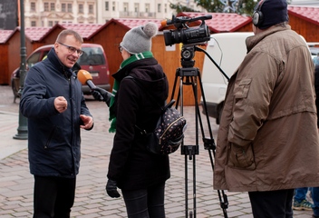 Biskup Tomáš Holub a primátor Martin Baxa rozdávali před katedrálou sv. Bartoloměje společně s plzeňskými skauty betlémské světlo a teplé nápoje na zahřátí. 23. prosince fotil Jiří Strašek.