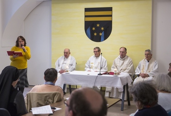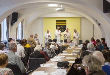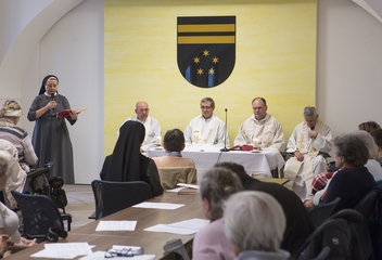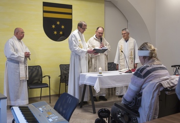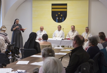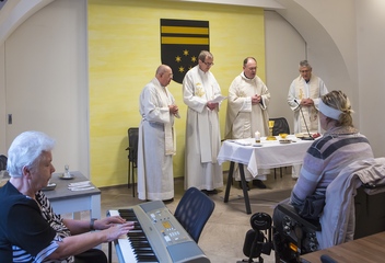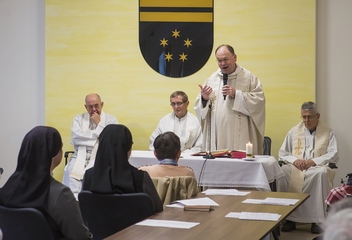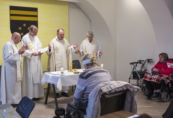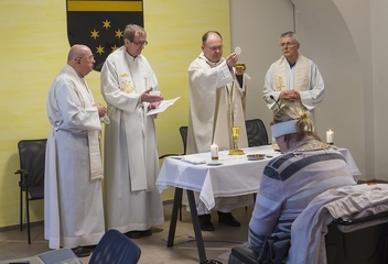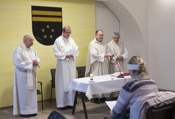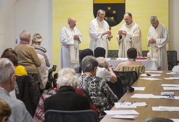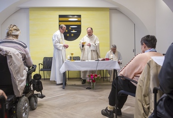 Mši svaté, spojené s udílením svátosti nemocných, předsedal generální vikář P. Jakub Holík. Nechyběl ani P. Jiří Barhoň, P. Ludolf Kazda a P. Pavel Lepařík, kteří patří k tradičním zpovědníkům. Na dálku jsme pozdravili do Brna i P. Didaka Klučku OFM, který rovněž patříval k pravidelným a oblíbeným účastníkům těchto setkání.