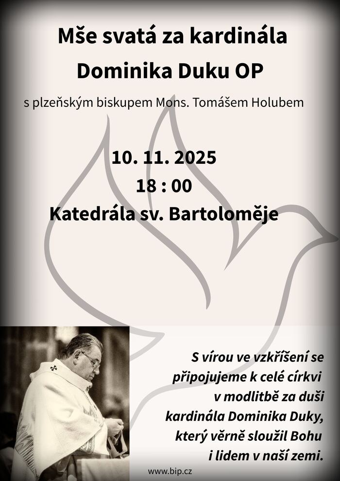 S vírou ve vzkříšení se připojujeme k celé církvi v modlitbě za duši kardinála Dominika Duky, který věrně sloužil Bohu i lidem v naší zemi.
