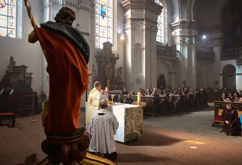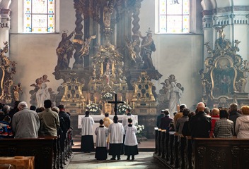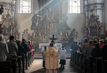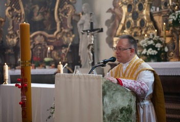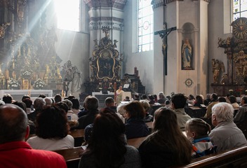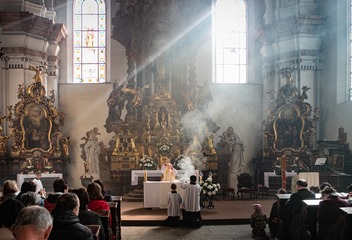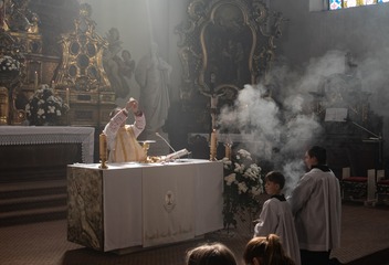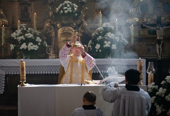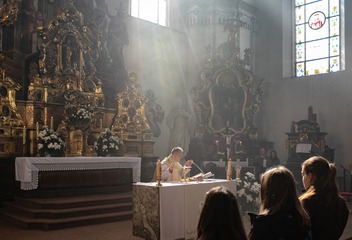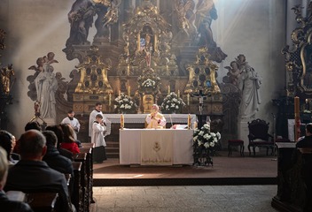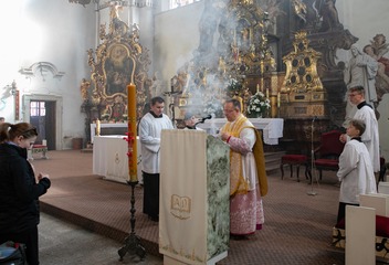 Mše svatá s žehnáním pokrmů na Boží hod velikonoční v Domažlicích