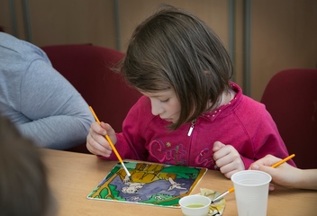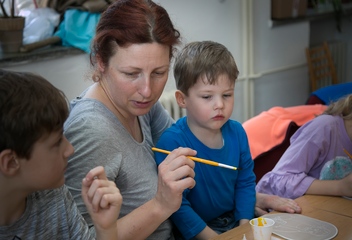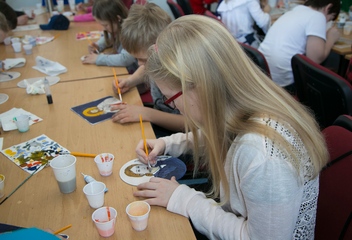 Program pro děti se nesl v duchu misií. Dopoledne jsme malovali na hedvábí – k dispozici se nabízely různé předlohy, které jsme pak speciálními barvami vymalovali – matka Tereza, Cyril a Metoděj, Paulina Jaricot, svatá rodina a další. Povídali jsme si o tom, kdo to je misionář a jaké vlastnosti potřebujeme, abychom se jim podobali. Také jsme hráli různé hry a zpívali s kytarou. Při mši svaté se děti účastnily obětního průvodu – každý nesl nějaký symbol, který se vztahoval k misiím. Na památku od nás dostali kněží obrázek namalovaný na hedvábí – aby si na Nýrsko zas někdy vzpomněli.