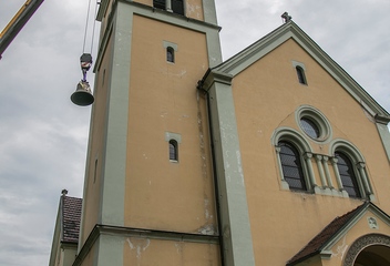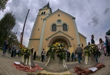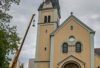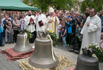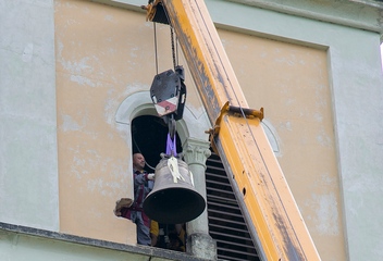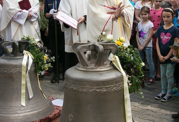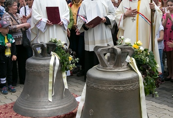 Díky všem dárcům, podporovatelům a velkému jeřábu tak mohly být v sobotu zvony zavěšeny a biskupem Tomášem požehnány. Zvony se poprvé rozezněly při následujícím slavení mše svaté.