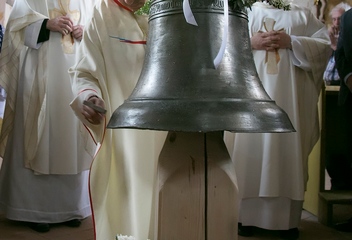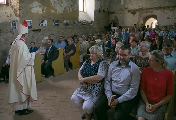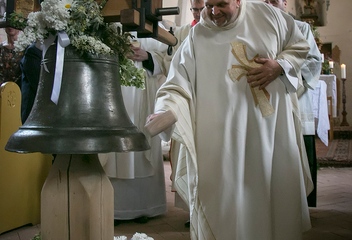 Mši svatou se žehnáním zvonu z roku 1589 v Racově celebroval 1. června biskup Tomáš. Fotila Soňa Pikrtová.