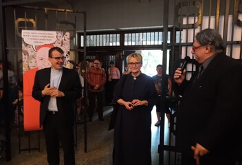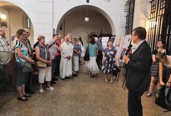 Slovo pronesl biskup Tomáš Holub, děkan fakulty designu a umění doc. Josef Mištera, vedoucí ateliéru Renáta Fučíková a o své inpiraci k tvorbě pohovořila také autorka jednoho z obrazů Anna-Marie Mišterová.