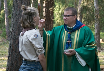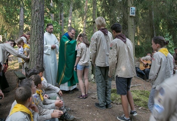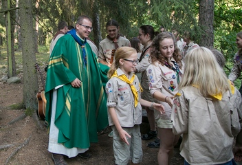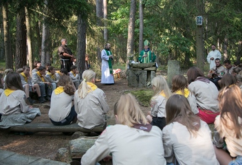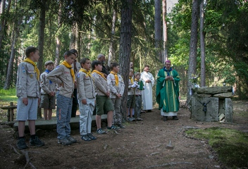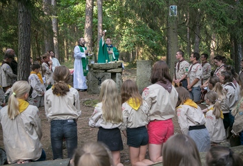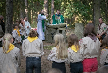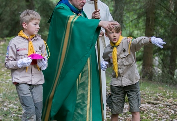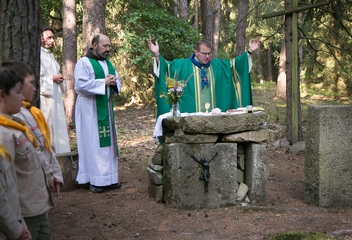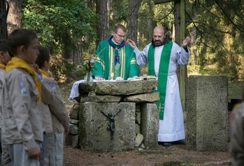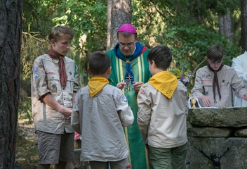 Skautská mše s biskupem Tomášem v Milevě u Kladrub