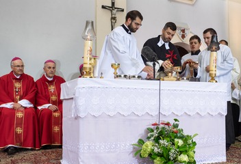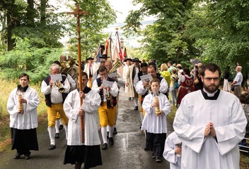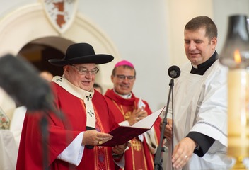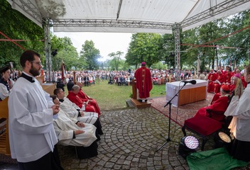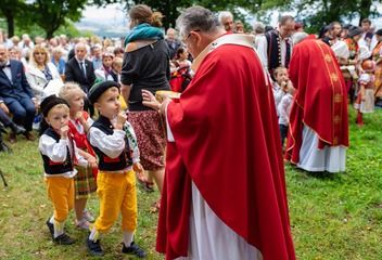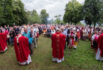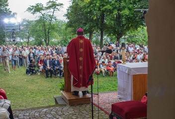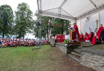 „Kostel sv. Vavřince na Veselé hoře u Domažlic je blízký všem Chodům, kteří sem už po staletí přicházejí, aby si na přímluvu svého patrona sv. Vavřince vyprosili Boží požehnání. Ale tento kostel znají nejen obyvatelé Domažlic a okolí. Na Veselou horu přicházeli poutníci doslova z celé republiky. Zvláště v dramatickém roce 1939, v roce plném naděje 1945, znovu se sem vraceli na konci šedesátých let, po dvaceti letech, kdy slavení pouti bylo zakázáno. A konečně tu prožívali radost návratu demokracie a svobody v roce 1989,“ řekl poutníkům na začátku mše svaté domažlický farář a vikář Mirosław Gierga.