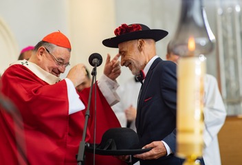 Kardinál Dominik Duka během uvítání připomněl osobnost Mons. Bohumila Staška, od jehož manifestačního kázání uplynulo 80 let. Poukázal také na význam Chodů, jako strážců hranic, pro české země: „Chtěl bych udělat jednu výměnu. Chtěl bych vám darovat kardinálský klobouk, jako poděkování církve a všech lidí, kteří vědí, zač vděčíme Chodům, zač vděčíme poctivým a statečným občanům této země.“ Klobouk od kardinála převzal starosta Domažlic Zdeněk Novák: „Nesmírně si vážím Vašeho daru a dovolím si Vám, na důkaz toho, že jste se zapsal do našich srdcí, darovat chodský klobouk a věřím, že vám bude sloužit stejně dobře, jako ten kardinálský.“