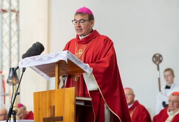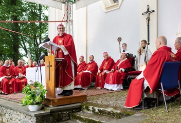 Kázání přednesl plzeňský biskup Tomáš Holub a také on se obracel k odkazu Mons. Bohumila Staška. „Jak jsme slyšeli na začátku, scházíme se 80 let od památné pouti a památného kázáné vyšehradského kanovníka Bohumila Staška. Pro něho bylo jasné, že toto kázání bude mít důsledky. Ačkoli neprovokoval, mluvil jasně a s odvahou. Povzbudil český národ v době, kdy to velmi potřeboval. Ukázal kořeny, ze kterých může i v temných dobách růst pevný strom a přinášet plody. Ukázal kořeny tradice a víry, které nejsou jen vzpomínáním a nostalogií, ale, jak řekl papež František při svém návratu z Rumunska, jsou stromem, který dovoluje růst, kvést a přinášet plody. Já si myslím, že kázání má přinést povzbuzení. Možná dnes nejsme v době, kdy nás vnější věci obírají o svobodu. Nejsme v době, kdy musíme čelit tomu, že naše situace je spojena s podmínkami, které nám nedovolují vyjadřovat naši víru nebo se hlásit k naší národní identitě. Ale nemůžeme říct, že nežijeme v době dramatické. Žijeme v době, která určitě není dobou poklidně jdoucí ode dne ke dni, od měsíce k měsíci, od roku k roku. Žijeme v době, která přináší mnohá další ohrožení. Klimatická, ačkoli to dnes nevypadá, ale zažili jsme dny, které nám ukázaly, že se situace skutečně mění. Situace demografická pro naši Evropu, která vymírá. Ale i napětí ve společnosti i v církvi.”