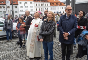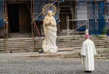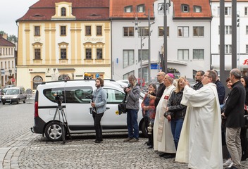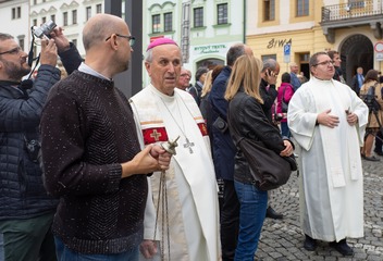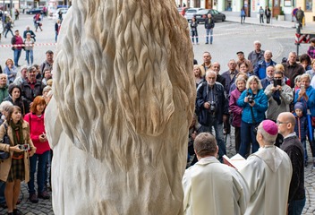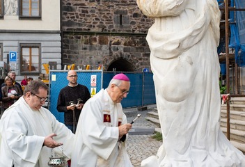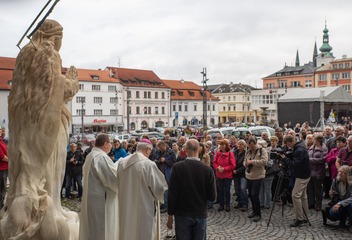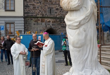 Novou sochu před vyzdvihnutím mezi dvě šedesátimetrové věže kostela požehnal v Klatovech P. František Radkovský. „Je nádherná,“ netajil své nadšení emeritní plzeňský biskup a upozornil také na typické atributy této sochy – zlaté hvězdy kolem hlavy, sepnuté ruce, u jejích nohou had s jablkem v tlamě, symbolizující prvotní hřích. Dojetí z nové sochy neskrýval ani klatovský farář Jaroslav Hůlle.