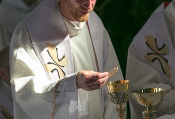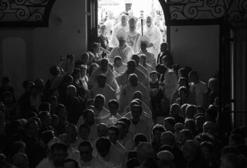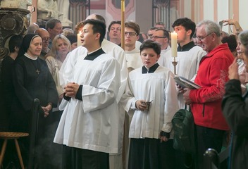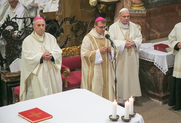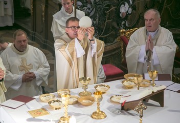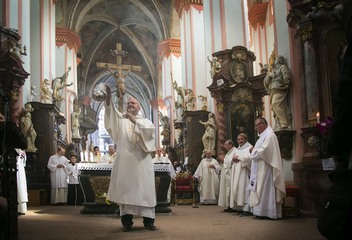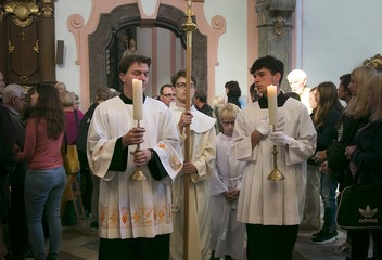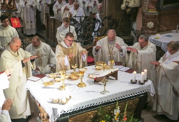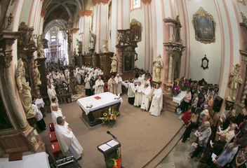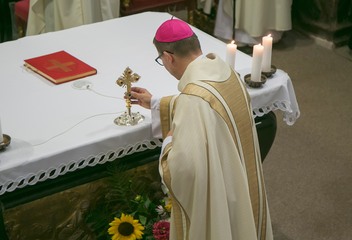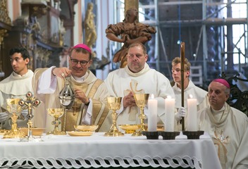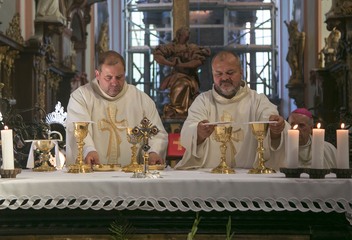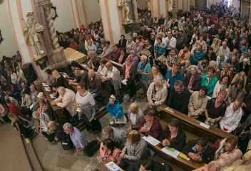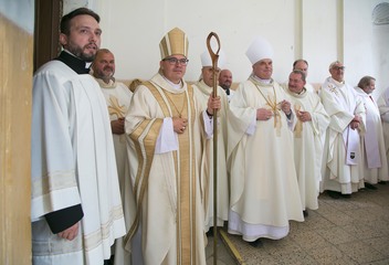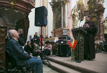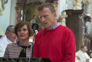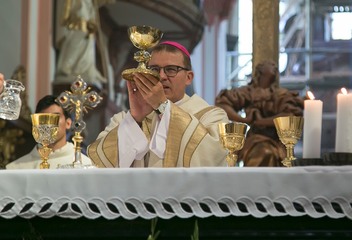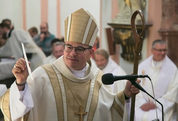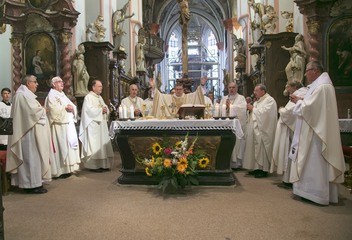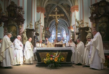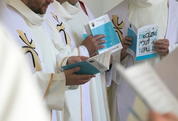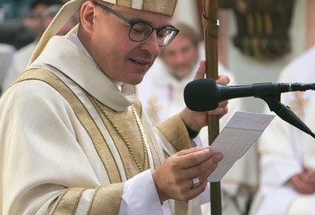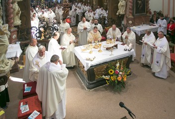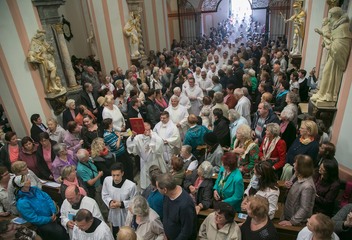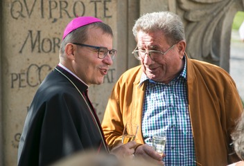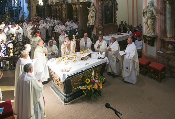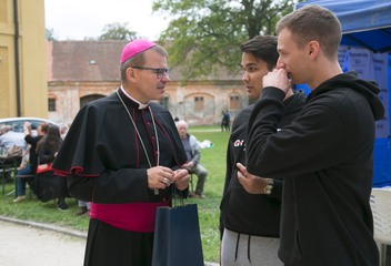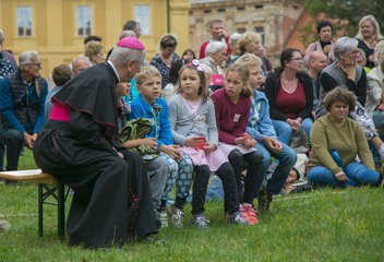 Od čtrnácti hodin vyvrcholila pouť mší svatou. Biskup Tomáš ve svém kázání připomenul, že říjen je papežem Františkem vyhlášen jako Misijní měsíc a zamyslel se nad úryvky z Písma, které se při bohoslužbě četly: „V prvním čtení jsme slyšeli nádherný úryvek o tom, jak se Samuel učí naslouchat Bohu. Svatopisec říká, že to bylo v době, kdy to lidé moc neuměli, protože Bůh nebyl ten, na koho byli naladěni. To je také naše doba. Žijeme v době, ve které mnoho lidí vůbec není naladěno na Boha. My ale na něj chceme být naladěni. A tak se musíme učit to, co se učil Samuel, musíme se učit říkat: „Pane, tys mě volal, já poslouchám…“ První krok, který musíme dělat znova a znova, je být vnitřně lidmi, kteří svým životem, ale i ve své mysli a ve svém vědomí říkají to důležité: „Pane, tvůj služebník, tvá služebnice, tedy já, já poslouchám, mluv ke mně, říkej to, co mi chceš říct. Já nechci vymýšlet věci jen tak, nazdařbůh, já se chci ptát, co mi říkáš.“ Prosím, řekněme tuhle větu každý sám za sebe: „Mluv, pane, tvůj služebník, tvá služebnice, to jsem já, já poslouchám…“ Ve druhém čtení pak přichází nádherný úryvek, ve kterém apoštol Pavel říká, že on je ten, který kleká na kolena. V tomto naslouchání, ke kterému se připravujeme jako ostatní křesťané po celá tisíciletí, máme umět začít vnímat tu skutečnou hloubku a výšku, šířku a délku toho, co znamená, že Pán Bůh nás má rád. Poznat Boží lásku, která přesahuje každé lidské poznání, a nechat se prostoupit vší milostí Boží.“
