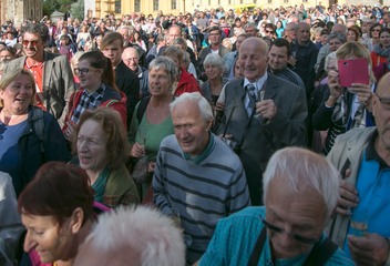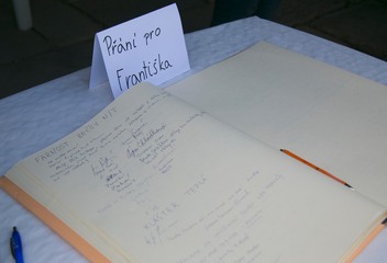 Po mši svaté byl pro všechny připraven přípitek, který pro oslavu osmdesátin biskupa Františka Radkovského věnovala společnost Bohemia Sekt. „Jménem vás všech, kteří tu jste, bych ti chtěl docela prostě popřát. Popřát ti, abys byl i nadále znamením, že Hospodin je veliký a když to člověk vezme vážně, může se z toho radovat. Prosíme, aby ti Pán Bůh i nadále žehnal. Aby byl tvojí oporou, inspirací a silou a abychom i my mohli být u toho. Děkujeme ti za všechno,“ popřál za všechny přítomné biskup Tomáš Holub svému předchůdci, který dostal darem knihu s přáními od věřících z celé diecéze a také maketu varhaní píšťaly. Tu mu předal biskup Tomáš se slovy: „Tohle je pouze maketa, kterou máš na stěnu do Karlových Varů. Reálná píšťala teď chybí u varhan v katedrále sv. Bartoloměje. Bohužel to není F, ale A. Ta reálná píšťala bude mít tři a půl metru, bude instalována do katedrálních varhan a bude na ní vyryto „František Radkovský. První biskup plzeňský. 1993 – 2016“. Tohle tedy, Františku, bude v naší katedrále jako píšťala, který bude znít vděčností za to, že jsi byl první biskup plzeňský. A jen dodám, že skvělý biskup plzeňský.“