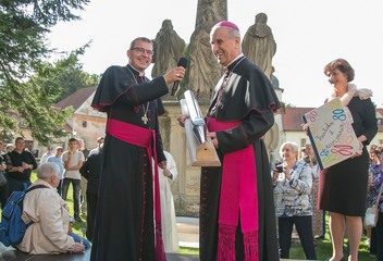 V závěru mše svaté vyjádřil biskup Tomáš radost nad tím, že byl přítomen nový generální vikář plzeňské diecéze P. Jakub Holík a že na pouť přicestovali jeho bývalí farníci z Třebíče. Jeho dík patřil také skladateli Miloši Bokovi za jeho intrádu ke mši věnovanou blahoslavenému Hroznatovi. Biskup nezapomněl ani na premonstráty z Teplé a na všechny pořadatele v čele s Jindřichem Fenclem: „Za poutí je opravdu neskutečné práce a je to skvělé. Děkuji.“