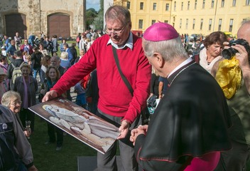 Diecézní poutí také symbolicky skončila modlitební štafeta za jednotlivé farnosti. V rámci ní putoval relikviář s ostatky sv. Bartoloměje po všech farních kostelech v diecézi. Biskup vrátil relikviář zpět do rukou P. Petera Fořta z Kraslic. Relikviář se tak vrátil zpět do kostela sv. Bartoloměje na Přebuzi.