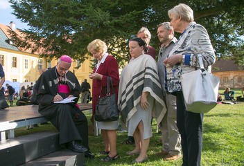 Po dopolední společné modlitbě za diecézi se poutníci mohli občerstvit u stánků, které po celý den nabízely dobrou kávu, klobásy, sladké i slané palačinky a mnoho dalších pochutin. Odpoledne pak měli příchozí možnost prohlédnout si klášter a například i výstavu s názvem Kardinál Josef Beran očima mladých ilustrátorů. Tato expozice měla premiéru v červnu v Plzni a poslední týdny byla umístěna na moravském Velehradě. Výstavu připravila ilustrátorka paní Renáta Fučíková se svými studenty z Mediální a didaktické ilustrace. Představuje důležité momenty v životě kardinála Berana tak, jak mladé umělce oslovují dnes. Kdo nechtěl trávit čas v útrobách kláštera, měl možnost zaposlouchat se do lidových písní v podání souboru Úslaváček, který přijel ze Starého Plzence.