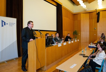 „Víra křesťanská a vlastenecká jsou rodné sestry,“ zazněla v aule Filozofické fakulty v Jungmannově ulici známá slova Bohumila Staška. Po úvodních vystoupeních biskupa plzeňského Tomáše Holuba a rektora ZČU Miroslava Holečka na ně ve své řeči odkázal první z hostů, děkan Fakulty sociálních studií Masarykovy univerzity Stanislav Balík. „Potřebujeme vlastenectví více civilní a méně silácké,“ nechal se slyšet.