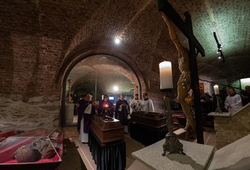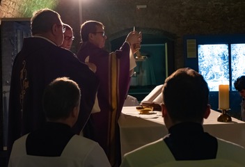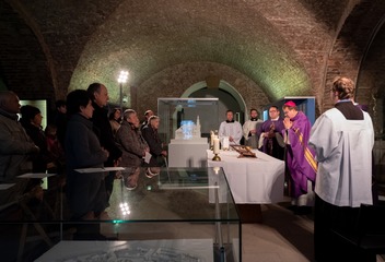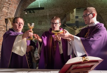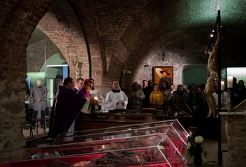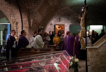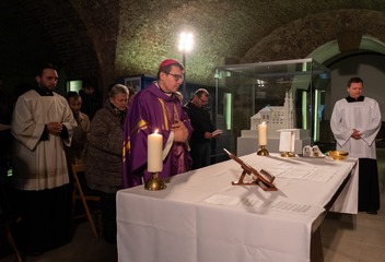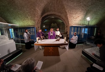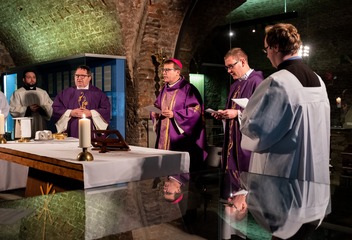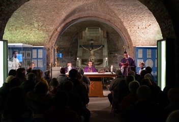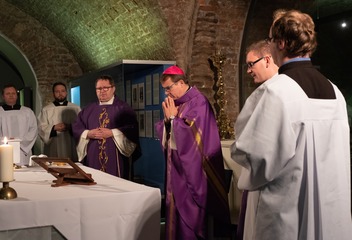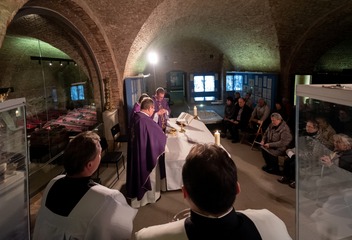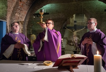 Biskup Tomáš Holub sloužil mši svatou v klatovských katakombách