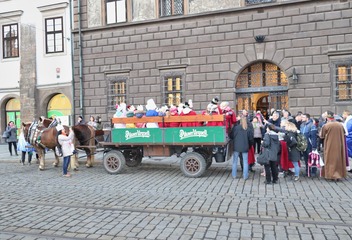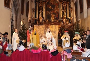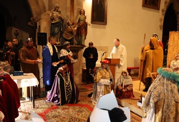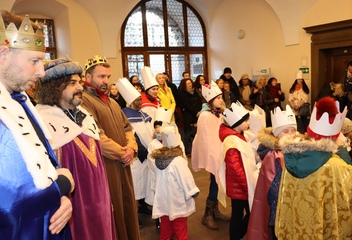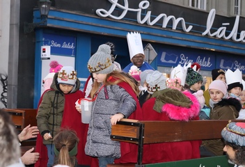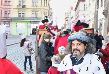 Slavnostní zahájení v mázhauzu doprovázela zpěvem schola kostela Nanebevzetí Panny Marie. Po písních a proslovech se malí koledníci vydali na cestu do nedalekého kostela Nanebevzetí Panny Marie ve Františkánské ulici. Tuto cestu absolvovali tradičně na valníku taženém pivovarskými koňmi. V kostele ve Františkánské ulici všichni přítomní zhlédli staroplzenecký živý betlém s písněmi. Na závěr P. Jakub Holík požehnal křídy, aby měli malí tři králové čím psát K+M+B 2020 na dveře přispěvatelů Tříkrálové sbírce.