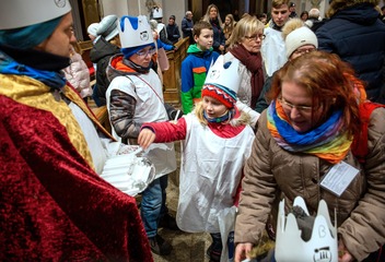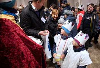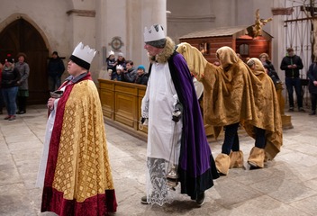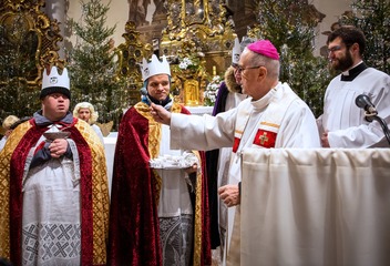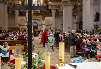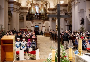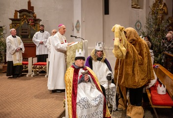 Za účasti emeritního biskupa Františka Radkovského byla 4. ledna oficiálně zahájena Tříkrálová sbírka v Domažlicích. Fotil Jiří Strašek.