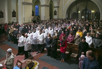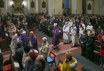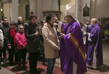 Biskup Tomáš uděloval popelec v kostele sv. Jana Nepomuckého v Plzni