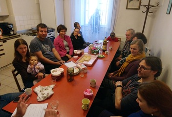 V poutním kostele Navštívení Panny Marie na Vršíčku jsme slavili společnou eucharistii a pak nás čekala cesta z kopečka dolů do Rokycan na faru a společný oběd, za který musíme moc poděkovat manželům Havlíkovým. Ti nás trochu zasvětili a ukázali, že i makrobiotické jídlo je velmi chutné. Nakonec jsme si ještě u kávy a koláče trochu povídali o hlavním tématu Národního týdne manželství – Manželství v síti… nejen internetové, ale také v síti vztahů. Všichni si domů odnášeli velmi příjemný pocit ze společně stráveného dne plného sdílení a společenství a malý dárek. Děkujeme všem za to, že se této pouti zúčastnili, a těšíme se na příští rok.