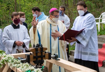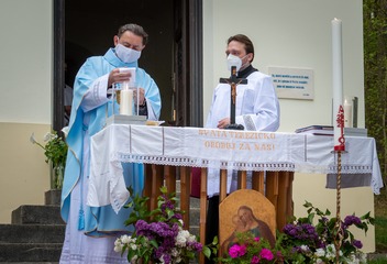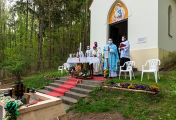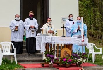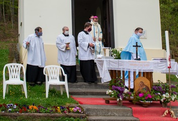 V neděli 10. května proběhla poutní mše svatá, při níž biskup Tomáš požehnal zvonu v kapli Panny Marie Pomocné. Fotil Jiří Strašek.