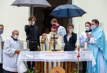 Přikládáme fotky od Jiřího Straška z žehnání zvonu.