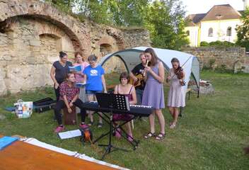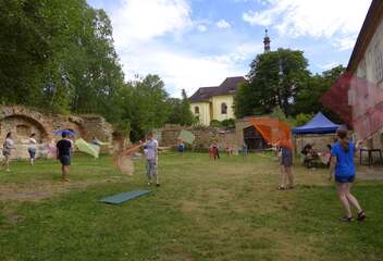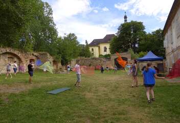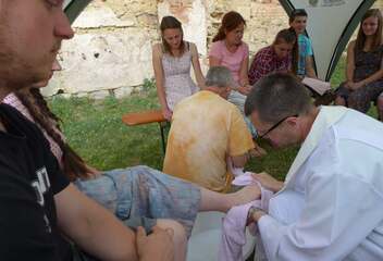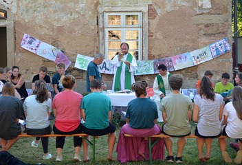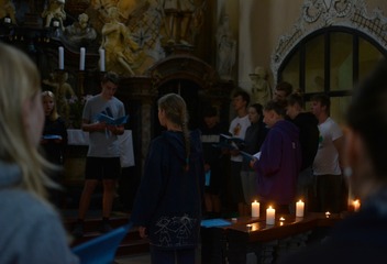 Velmi mě potěšily neplánované chvály ve čtvrtek po mši, kdy Tonda a spol hráli a my mohli na zahradě praporovat a chválit Pána, neomezeni stěnami kostela. Tereza, Liberec Ano, neskutečně jsem si to užila. To souhlasím. Musím upřímně říct, že to pro mě bylo silnější než později v kostele, ta volnost, dodává Terezie z Hůrky.