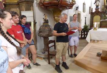 Dvakrát jsme měli večer chval v nečtinském kostele. Zpívali jsme za doprovodu kláves, kytary a bubnu z OMI-zpěvníků, modlili se a chválili Boha. Také jsme měli možnost přistoupit k pomazání olejem radosti.