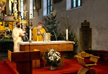 Pontifikální mši svatou celebroval plzeňský biskup Tomáš Holub. 25. prosince 2020 fotil Jiří Strašek.