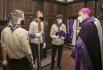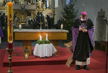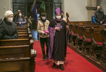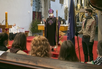 Při bohoslužbě o 4. neděli adventní přivítal biskup Tomáš Betlémské světlo v Plzni