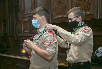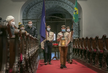 Ani pandemie koronaviru nezastavila letošní putování Betlémského světla. V kostele Nanebevzetí Panny Marie v Plzni fotila 20. prosince Soňa Pikrtová.