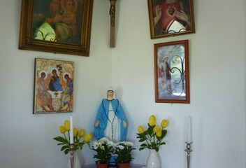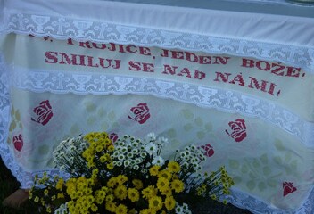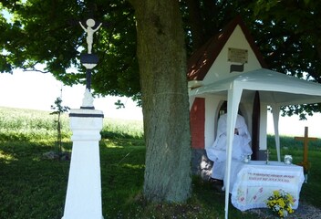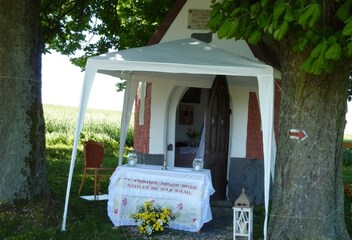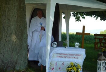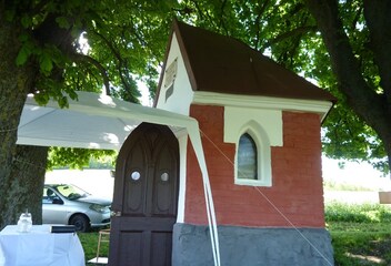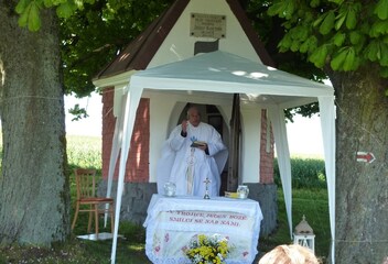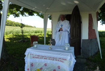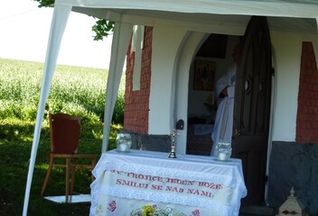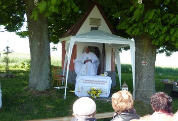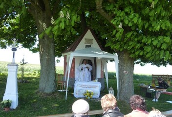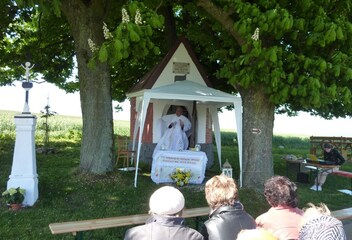 Mši svatou celebroval Mons. Miroslav Kratochvíl, bohoslužbu, kterou sloužil pan farář u venkovního oltáře, navštívilo několik desítek věřících z Chodské Lhoty a okolních obcí. Mše svatá se zde koná vždy jednou za pět let. I když letos v tuto neděli bylo hodně větrné počasí, všichni byli rádi, že se zde mohli sejít. Po mši svaté si také všichni poutníci pochutnali na vynikajících pouťových koláčích, které Koutníkovi a Jägerovi napekli.