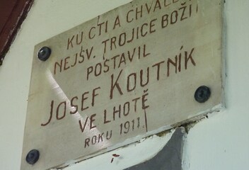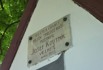 Kaplička stojí u cesty z Chodské Lhoty směrem k Vítovkám. Motivací stavby bylo uzdravení rolníka po těžkém úrazu – kaple byla postavena na náklady pana Josefa Koutníka z Chodské Lhoty č.p. 75. Na pamětní tabuli na kapličce je nápis: Ku cti a chvále Nejsv. Trojice Boží postavil Josef Koutník ve Lhotě roku 1911. Vysvěcena byla důstojným p. Gedem, farářem v Loučimi v srpnu 1911.