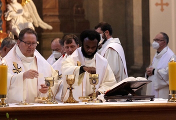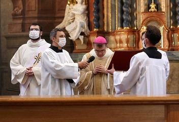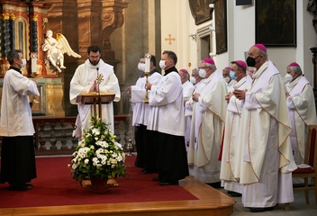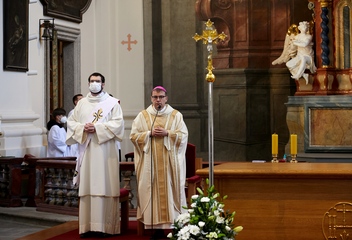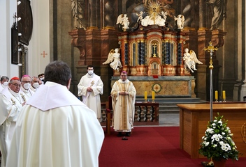 V závěru slavnostní bohoslužby, jíž se účastnili čeští i moravští biskupové, předal biskup Tomáš Holub ocenění klatovskému starostovi Mgr. Rudolfu Salvetrovi.