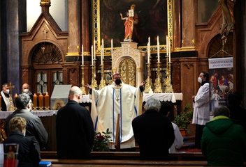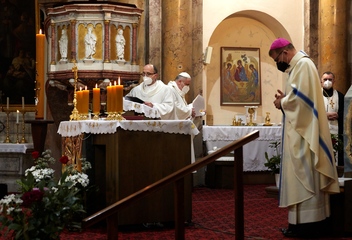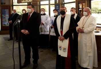 Žehnání pramenů s biskupem Tomášem v Mariánských Lázních