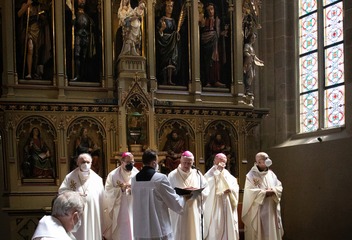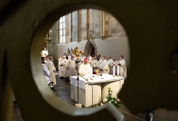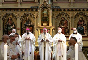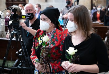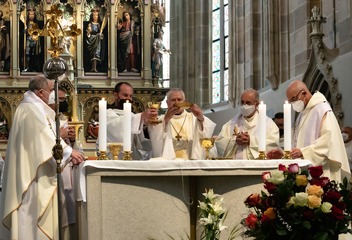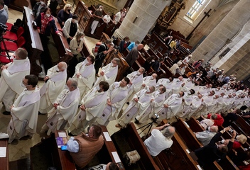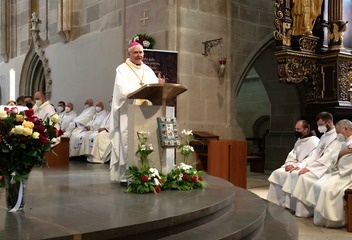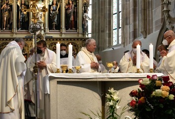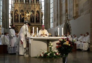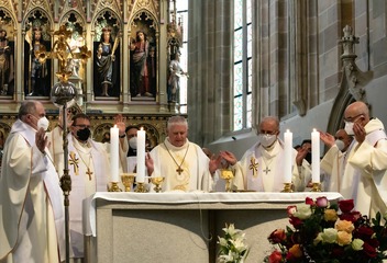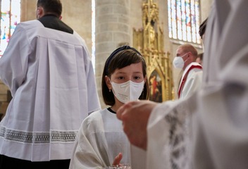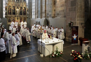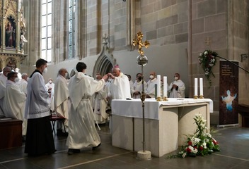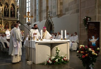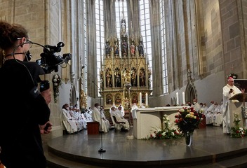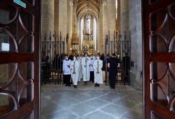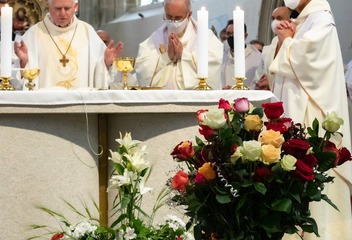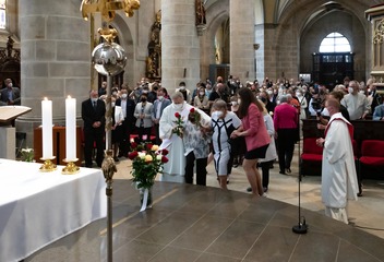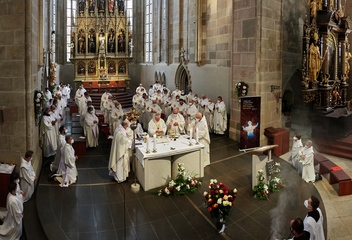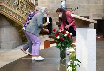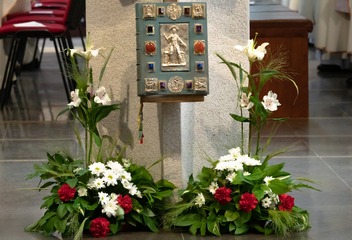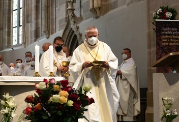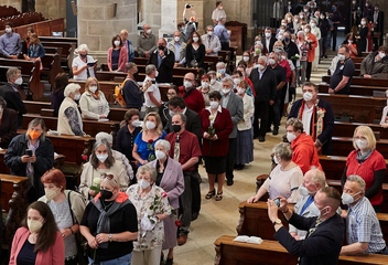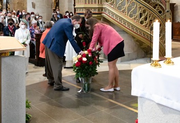 Zástupci farností, kteří přijeli na diecézní pouť do nově otevřené katedrály sv. Bartoloměje, vytvořili před oltářem krásnou pestrovarevnou kytici. Kytice růží z jednotlivých farností symbolizovala jejich propojení s nově otevřenou katedrálou sv. Bartoloměje.