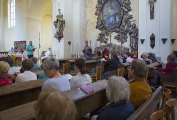 6. srpna se konala tradiční poutní mše umělců (lívancová pouť) v Manětíně. Mši svatou celebroval P. Martin Sedloň. Fotila Soňa Pikrtová.