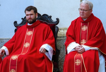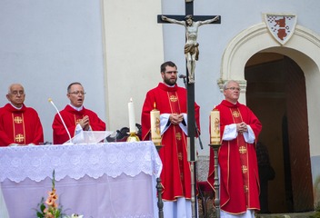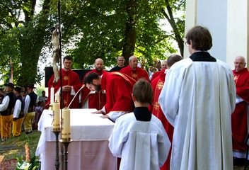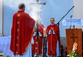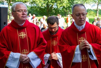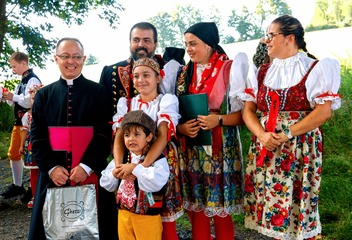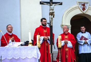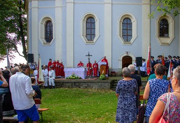 Důležitými událostmi v rámci Chodských slavností jsou i slavné mše svaté na Veselé hoře – Vavřinečku, které jsou slouženy pod širým nebem. Jednu z nich letos celebroval P. Tomáš Kadlec. Fotil Jiří Strašek.