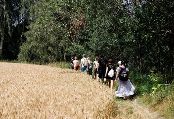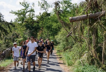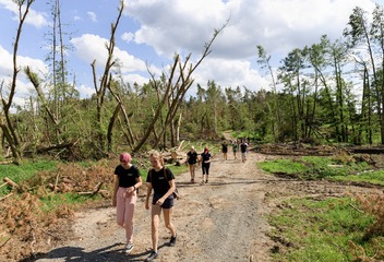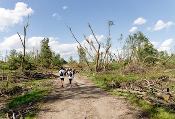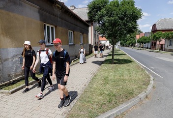 Fotografie zachycují střípky z třináct kilometrů dlouhého putování z Jesenice do obce Petrohrad. Cesta vedla také přes tornádem poničené Stebno.