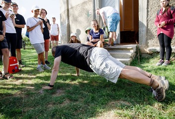 Biskup Tomáš slavil s účastníky tábora Quest mši svatou v kapli Všech svatých v Petrogradu a svou návštěvu zakončil třiceti kliky. Mladí účastníci třetího ročníku tohoto tábora se sjeli do Jesenice nejen z plzeňské diecéze, ale i z dalších míst Čech a Moravy.