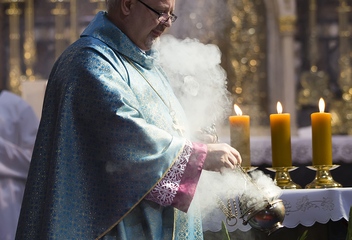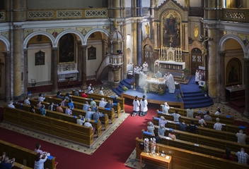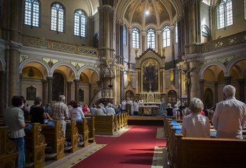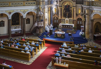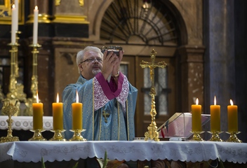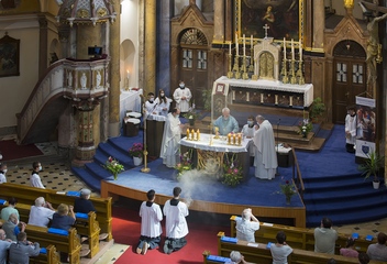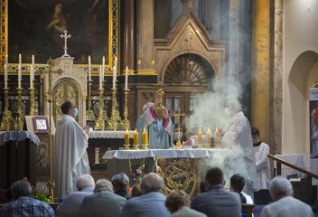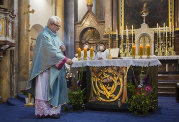 Mši svatou v kostele Nanebevzetí Panny Marie celebroval 14. srpna Mons. Milan Hanuš. Fotila Soňa Pikrtová.