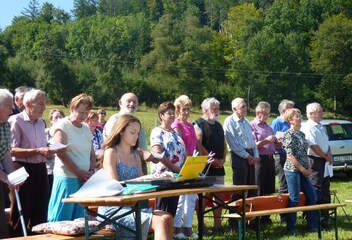 Mši provázeli věřící zpěvem písně „Pojď k Spasiteli“ a na závěr všichni zazpívali píseň „Čechy krásné, Čechy mé“. Kaple je zasvěcena patronu české země – svatému Václavovi. Bohoslužby se zúčastnili převážně poutníci z kdyňské a loučimské farnosti. Počasí v tento den bylo slunečné. Po mši svaté si mohli všichni pochutnat na vynikajících chodských koláčích. Bylo to takové rodinné setkání. Pan farář všechny pozval na další pouť, která se zde uskuteční opět za rok, tedy první zářijovou neděli v roce 2022.