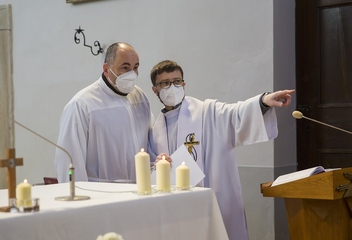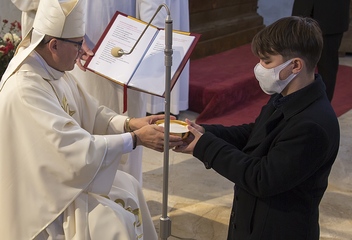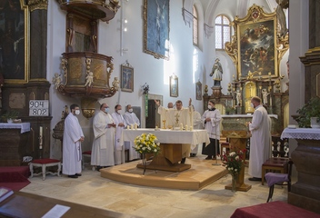 Mši svatou s pověřením lektorů a akolytů sloužil plzeňský biskup v kostele Narození sv. Jana Křtitele. Fotila Soňa Pikrtová.