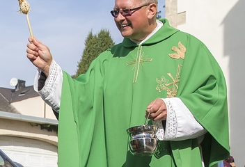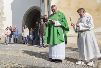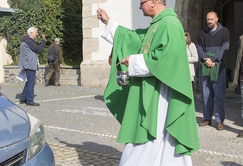 Po mši svaté v Tachově si lidé mohli nechat požehnat své dopravní prostředky