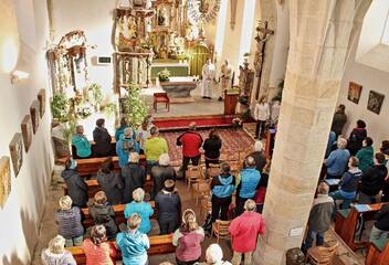 Věkové složení poutníků bylo od mladých až po seniory. S sebou přinesli růženec a velkou poutní svíčku s obrázkem Panny Marie a datem 6.11.2021, kterou umístili v kostele na levý postranní oltář k sošce kopie loučimské Madony.