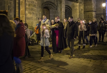 Týden před Štědrým dnem, 17. prosince, položil biskup Tomáš Holub sošku Ježíška do jesliček na náměstí Republiky v Plzni jako znamení blížících se Vánoc.