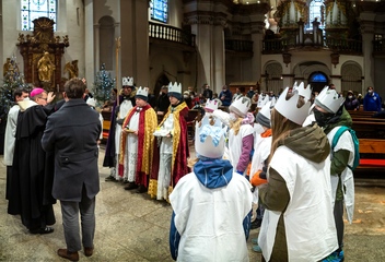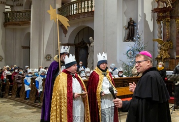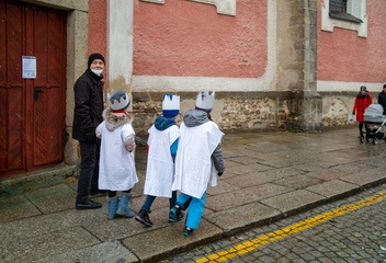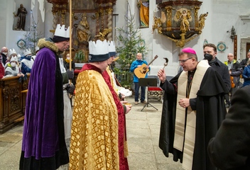 Biskup Tomáš požehnal koledníkům Tříkrálové sbírky v Domažlicích