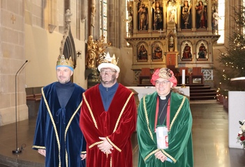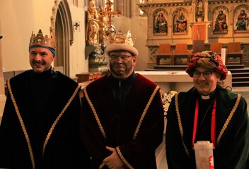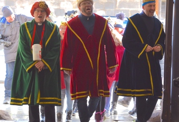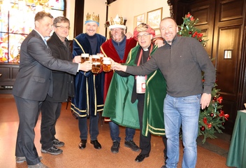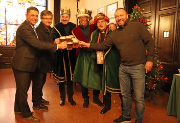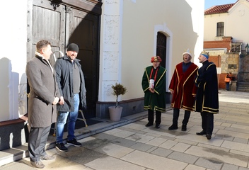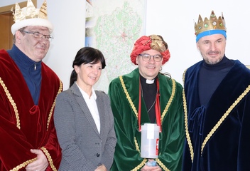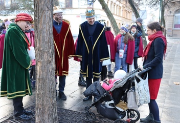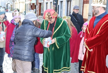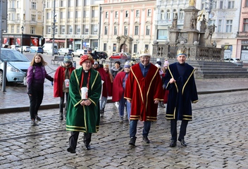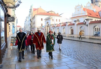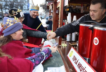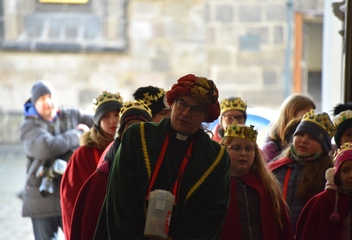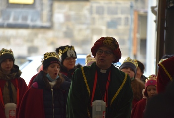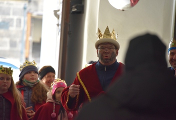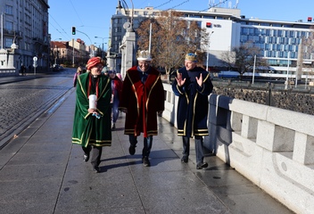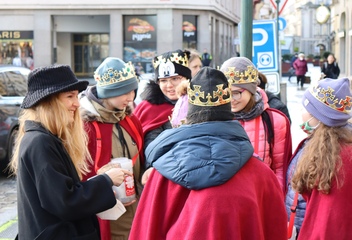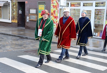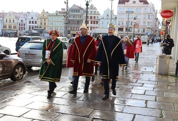 V rámci Tříkrálové sbírky vyšli do ulic Plzně jako králové zástupci (K)raje + (M)ěsta + (B)iskupství. Letos spolu s biskupem Tomášem Holubem koledovali plzeňský radní David Šlouf a náměstek hejtmanky Plzeňského kraje a poslanec Josef Bernard.