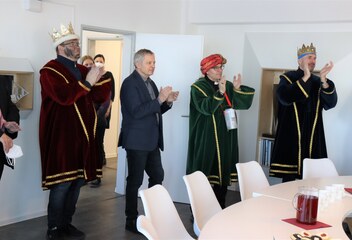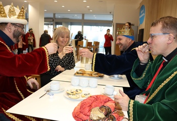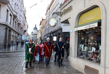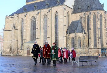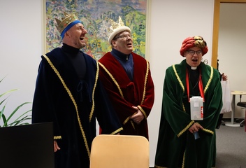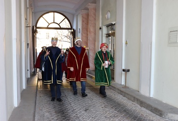 Tři králové společně s dětským sborem navštívili krajský úřad, budovu biskupství a plzeňský magistrát. Jejich zaměstnancům zazpívali, popřáli požehnaný a krásný rok 2022 a vybrali příspěvky do tříkrálkových pokladniček.