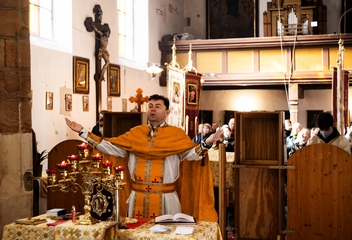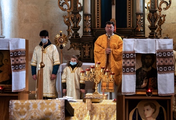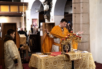 27. února se řeckokatolické bohoslužby kromě Čechů zúčastnily také desítky Ukrajinců žijících v Plzni. Fotil Jiří Strašek.